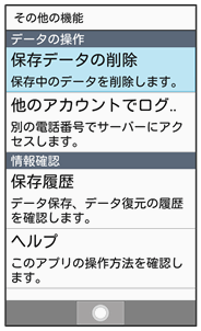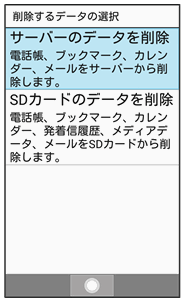 サーバー/SDカードなどに保存した電話帳データ/ブックマークデータ/カレンダーデータ/発着信履歴データ/画像データ/音楽データ/動画データ/メールデータを削除します。