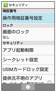 画面のロックや暗証番号など、セキュリティに関する機能を設定できます。設定できる項目は次のとおりです。