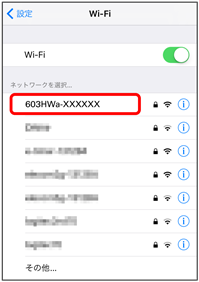 お買い上げ時のWi-Fi名は、「603HWa-」または「603HWb-」で始まる英数字です。