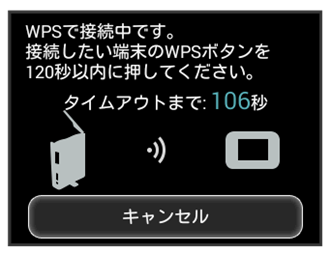 - 次の画面が表示されている間(120秒以内)に、アクセスポイント端末でWPS機能の接続設定を行う