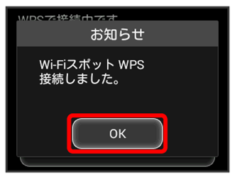 - 「Wi-Fiスポット WPS接続できませんでした。」と表示された場合は、OKをタップして再度接続を試してみてください。