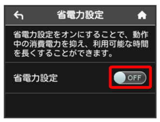 省電力設定をONにすることで、動作中の消費電力を抑え、利用可能な時間を長くすることができます。
