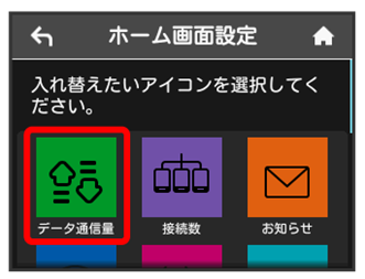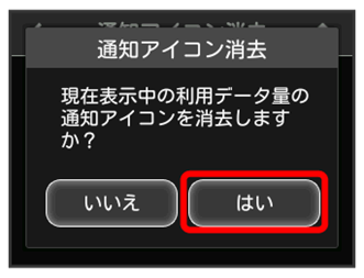 - この操作では、ステータスバーに表示されている通知アイコンのみ消去することができます。タッチメニューの「データ量設定」アイコンは消去できません。