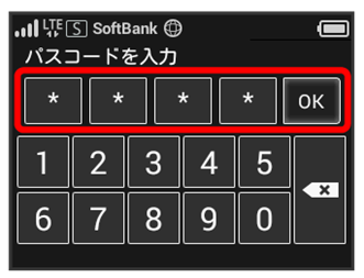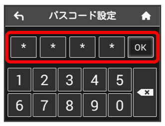 の画面に戻ります。その場合はパスコードの入力からやり直してください。 - パスコードを設定すると、画面ロックを解除する際にパスコードの入力画面が表示されるようになります。パスコードを入力して画面ロックを解除する手順については、「パスコードを入力して画面ロックを解除する」を参照してください。