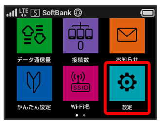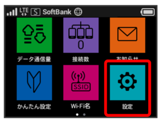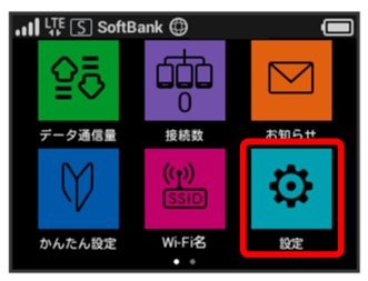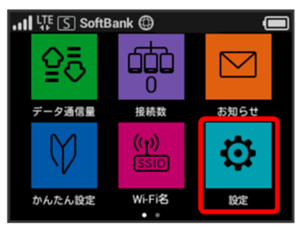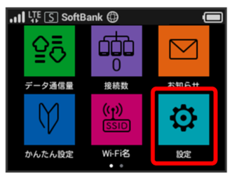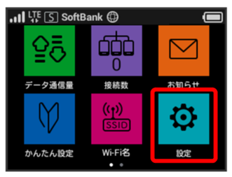 ホーム画面のタッチメニューアイコンの入れ替え、ネットワークモード、ローミング、画面ロック解除時のパスコード、ディスプレイの明るさ、スリープ設定、Wi-Fi通信規格、USB通信規格、言語/時間の表示、ソフトウェアの更新、通知アイコンの消去、WEB UIのURLの確認などの設定を行います。