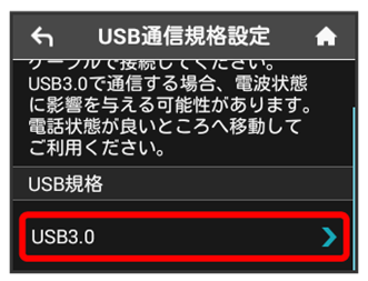 本機をUSB接続でご利用になる場合に、USB規格を変更できます。