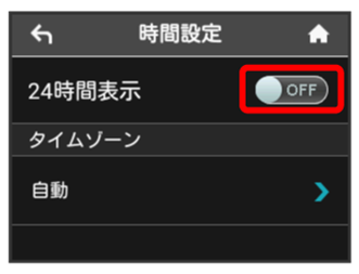 ロック画面での時刻の表示方法(24時間表示/12時間表示)やタイムゾーンを変更できます。