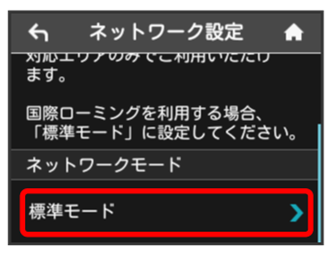 - 国際ローミングを利用する場合は、標準モードに設定してください。