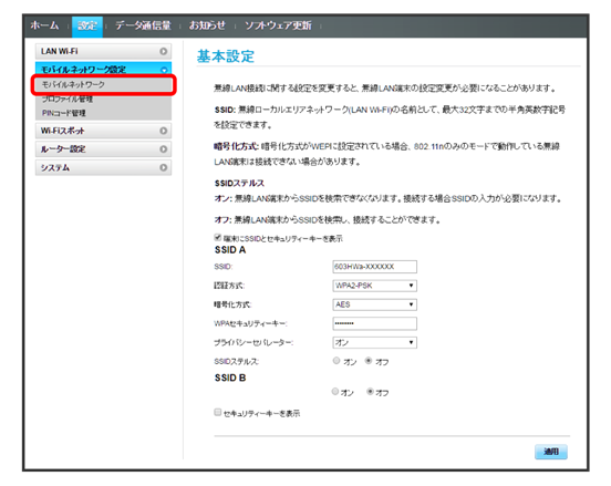 本機で4G/LTE/3Gネットワークに接続するうえでの詳細設定を行います。