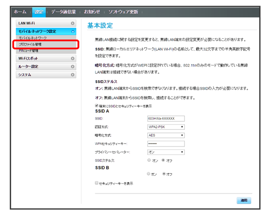 - 標準モードに設定していると、ご利用のデータ通信量によっては通信速度が低速化する場合があります。通信速度の低速化について詳しくは、「ご利用データ量に関する通知について」を参照ください。