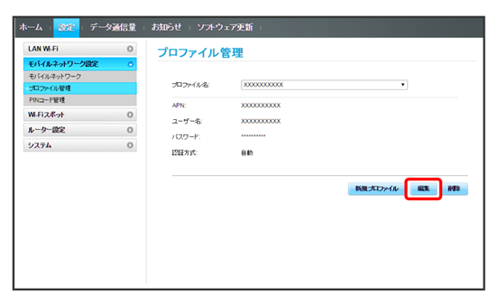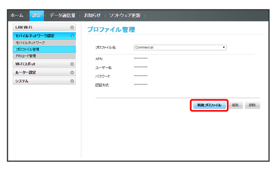お買い上げ時に設定されている初期プロファイルおよび現在接続に使用中のプロファイルは編集できません。