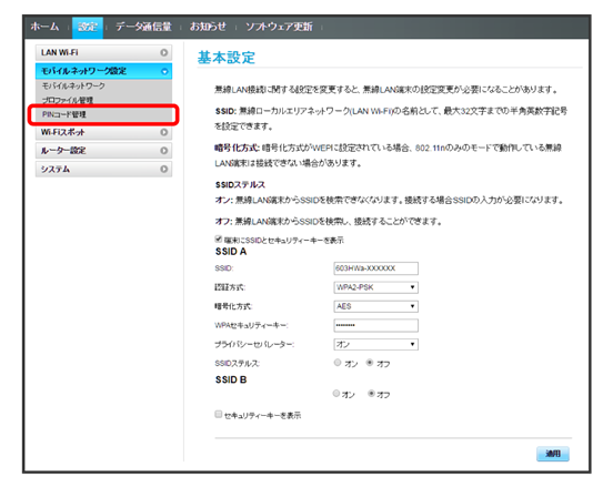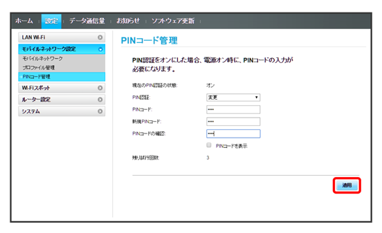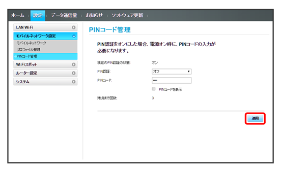 電源を入れたときに本機またはWEB UIからPINコードの入力が必要になります。