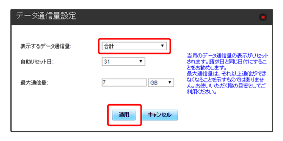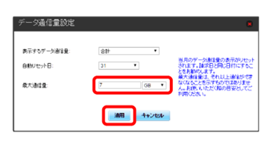 - GB/MBの単位でデータ通信量の最大値が設定できます。