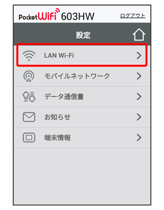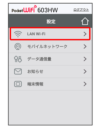 Wi-Fi名(SSID A)のLAN Wi-Fi基本設定が設定されます。