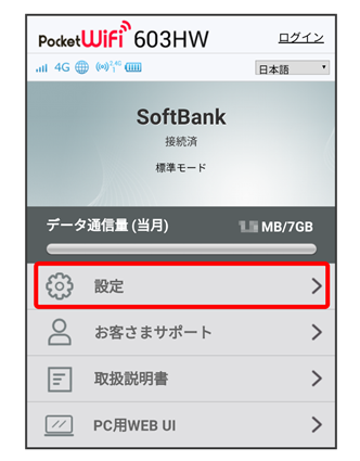 | スリープ設定 | 本機に無線LAN端末が接続されていない状態のとき、無線LAN機能を自動的にOFFにするかどうかを設定します。ただし充電中は、スリープ設定がONの場合でも、無線LAN機能はOFFになりません。 |
