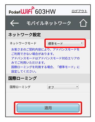 - 国際ローミングを利用する場合は、標準モードに設定してください。