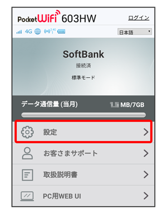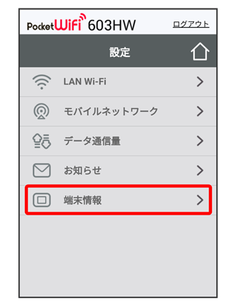 | 機種名 | 本機の機種名(603HW)です。 | |