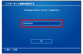 Wi-Fi名とパスワード(セキュリティーキー)については、「Wi-Fi名とパスワード(セキュリティーキー)について」を参照してください。これらを変更している場合には、設定しているWi-Fi名、パスワード(セキュリティーキー)を利用してください。