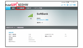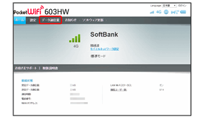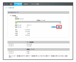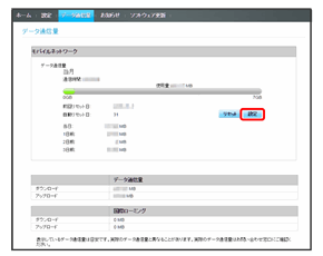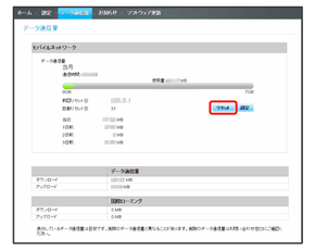 本機のデータ通信量を確認できます。また、データ通信量の最大通信量や、データ通信量のリセット日などを設定します。