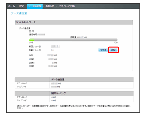 • データ通信量設定で設定した最大通信量の、現在までのデータ通信量が表示されます。最大通信量の設定については「最大通信量を設定する」を参照してください。