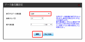 • GB/MBの単位でデータ通信量の最大値が設定できます。