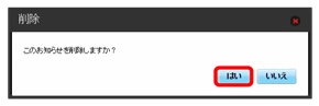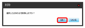 ポップアップ画面が表示され、選択したお知らせが削除されます。