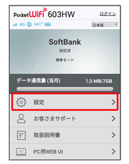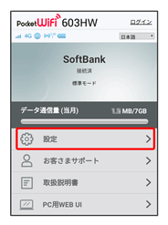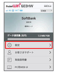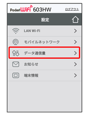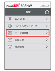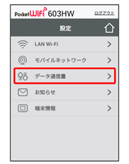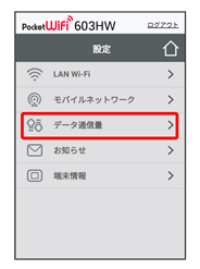本機のデータ通信量を確認できます。また、データ通信量の最大通信量や、データ通信量のリセット日などを設定します。