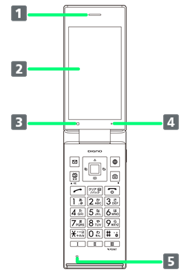 | 充電中や電話/メールの着信、その他の通知が届くと光ってお知らせします。 | ||