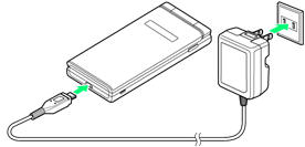 - 充電中に着信/充電 LEDが点滅しているときは、充電器の異常か、電池パックの異常か寿命のため、充電が正しく行われていません。このときは、使用している充電器などが、指定品であるか確認してください。すべて指定品であるときは、最寄りのワイモバイルショップまたは「お問い合わせ先」へご相談ください。