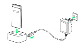 - 充電完了後は、卓上ホルダーから本機を取り外し、ACアダプタのプラグを家庭用ACコンセントから抜き、プラグを元の状態に戻す