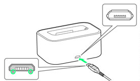 - ACアダプタのmicroUSBプラグを卓上ホルダーの接続端子に差し込む