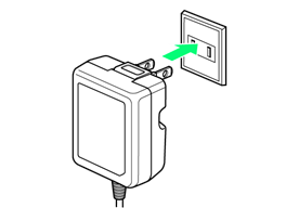 - ACアダプタのプラグを起こし、家庭用ACコンセントに差し込む