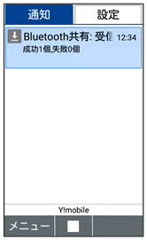 ペア設定している機器からデータの受信要求があると、通知パネルに共有通知が表示されます。次の操作を行うと、データを受信できます。