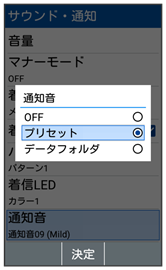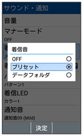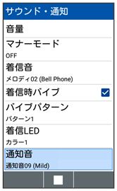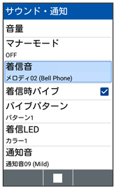 着信音やバイブレータ、着信LEDなどの設定をします。