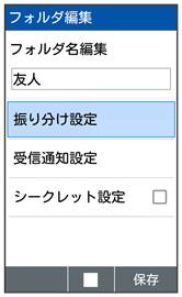 - 受信フォルダ、送信フォルダ、下書き/未送信フォルダには振り分け条件を登録できません。
