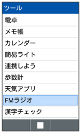 を押すとFMラジオが終了します。バックグラウンド再生時は、アプリ履歴から終了するか、再度FMラジオ画面に戻って