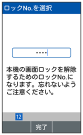 - ロックNo./パスワード入力画面で、設定したロックNo./パスワードを入力