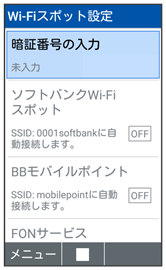 ソフトバンクWi-Fiスポット設定画面が表示されます。