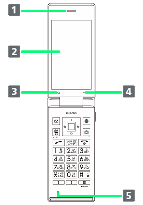 | 充電中や電話/メールの着信、その他の通知が届くと光ってお知らせします。 | ||
