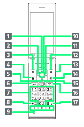 | サブディスプレイを表示、マナーモードの設定/解除(長押し) |
