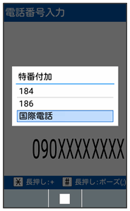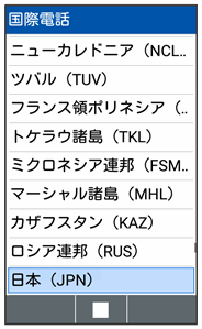 • その他の国に発信するときは、日本(JPN)の代わりに、相手のいる国を選びます。