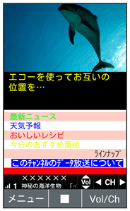 テレビ視聴画面(縦画面)では画面下部にデータ放送が表示され、番組の情報を入手できます。
