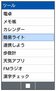 簡易ライト画面が表示され、簡易ライトが点灯します。