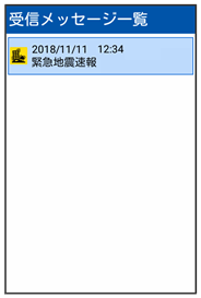 緊急速報メール受信メッセージ一覧画面が表示されます。