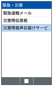 災害用音声お届けサービス画面が表示されます。