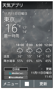 天気アプリ画面で