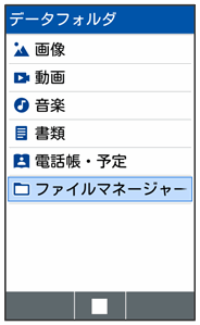 本機のデータはデータフォルダで管理されています。各アプリでデータを作成したり、メールやインターネットでデータを入手すると、自動的に該当するフォルダへ保存されます。