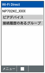 「ピアデバイス」欄に、近くにあるWi-Fi Direct規格対応機器が表示されます。