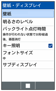 壁紙や画面の明るさなどが設定できます。設定できる項目は次のとおりです。