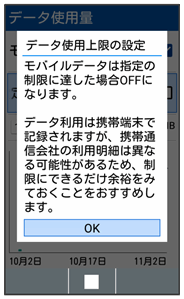 データ使用量はあくまでも本機での記録です。実際のデータ利用明細とは異なることがあります。